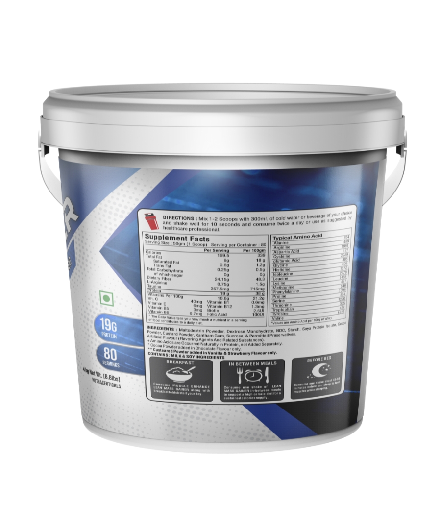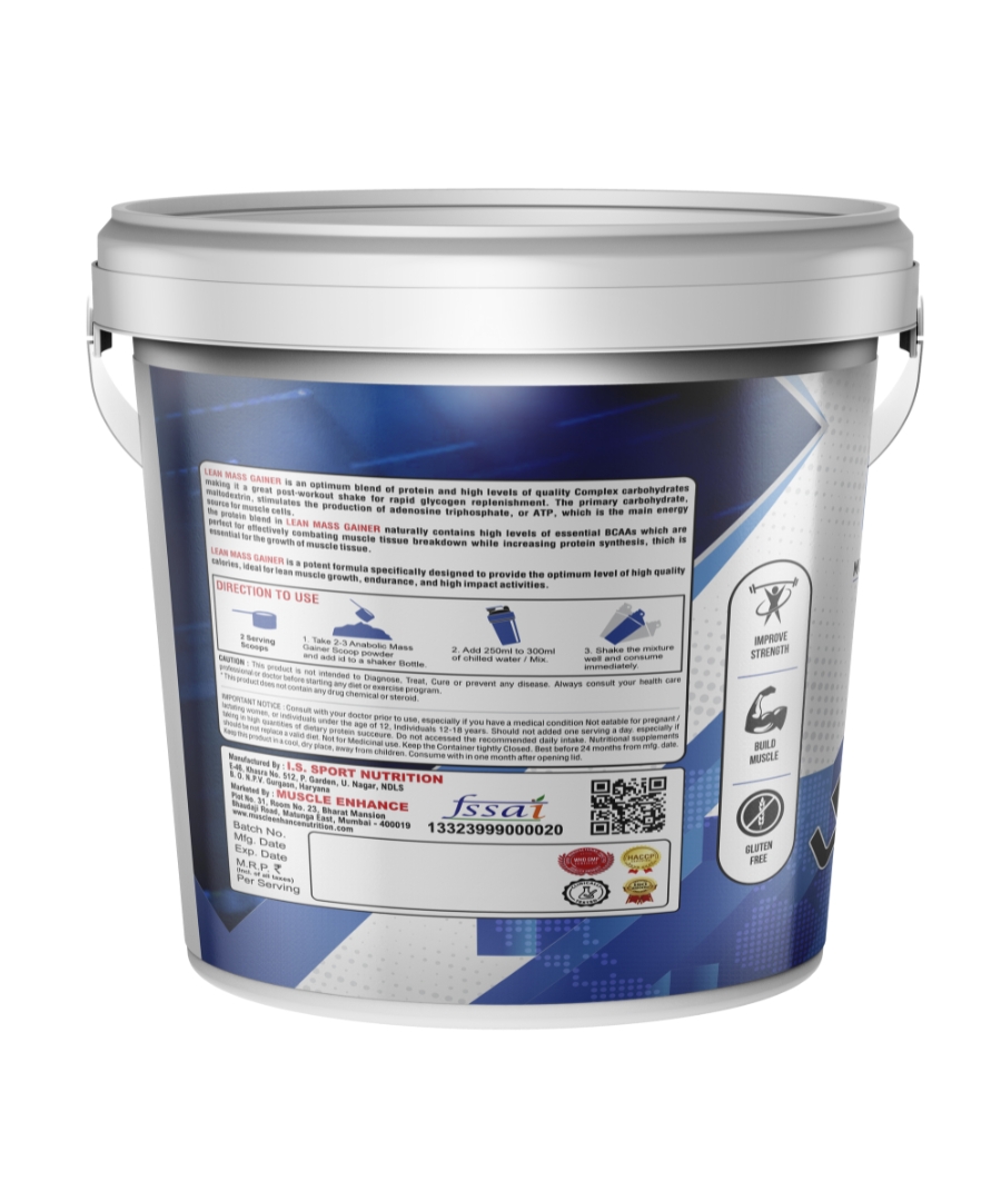 Muscle Enhance Nutrition Lean Mass is an advanced and effective weight gain supplement. It helps in the synthesis of new muscle gains and prevent post workout muscle loss. Added digestive enzymes helps in quick digestion of nutrients. Each serving provides 19 grams of protein