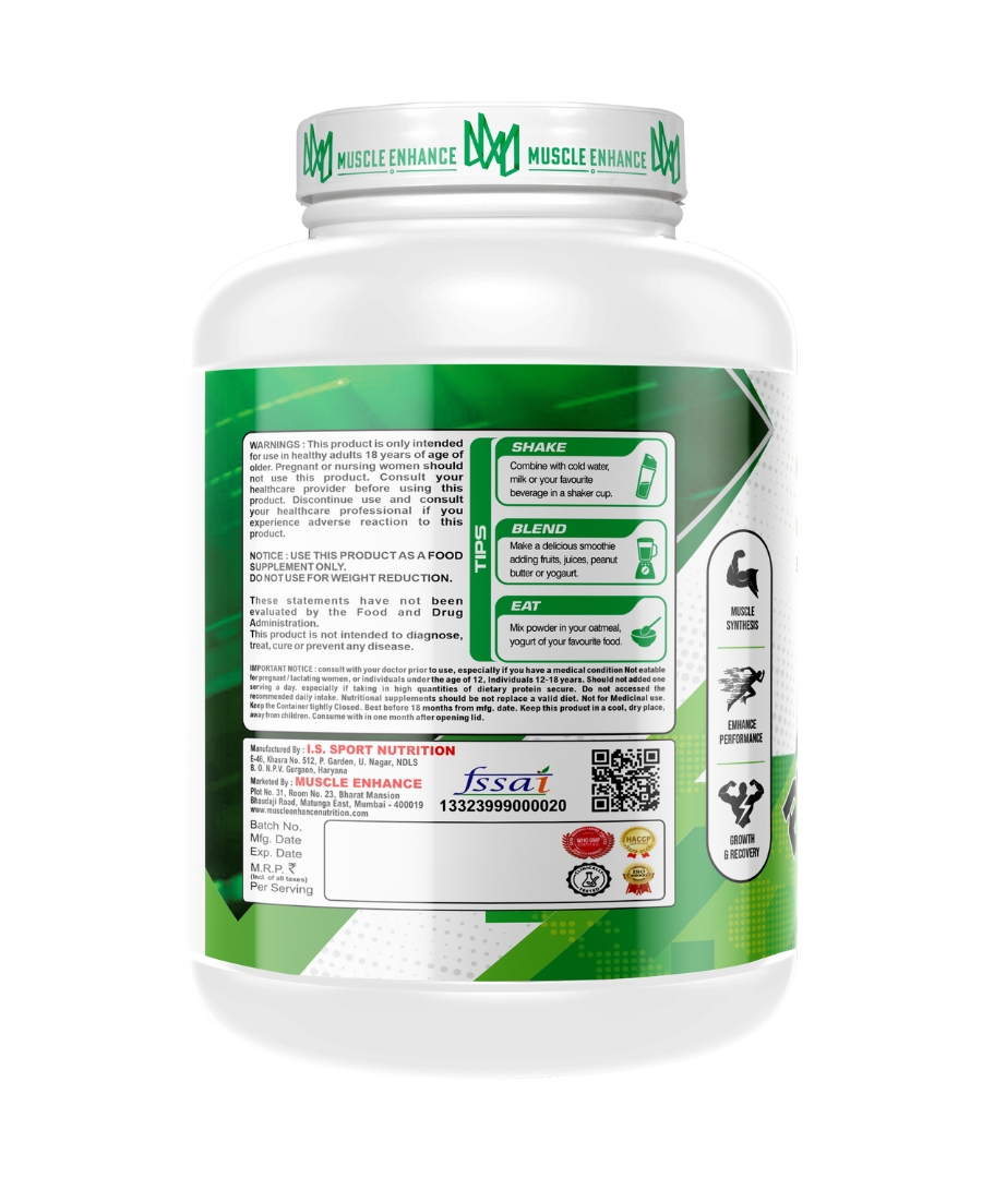 Muscle Enhance Nutrition Bulk Mass is an advanced and effective weight gain supplement. It helps in the synthesis of new muscle gains and prevent post workout muscle loss. Added digestive enzymes helps in quick digestion of nutrients. Each serving provides 23 grams of protein